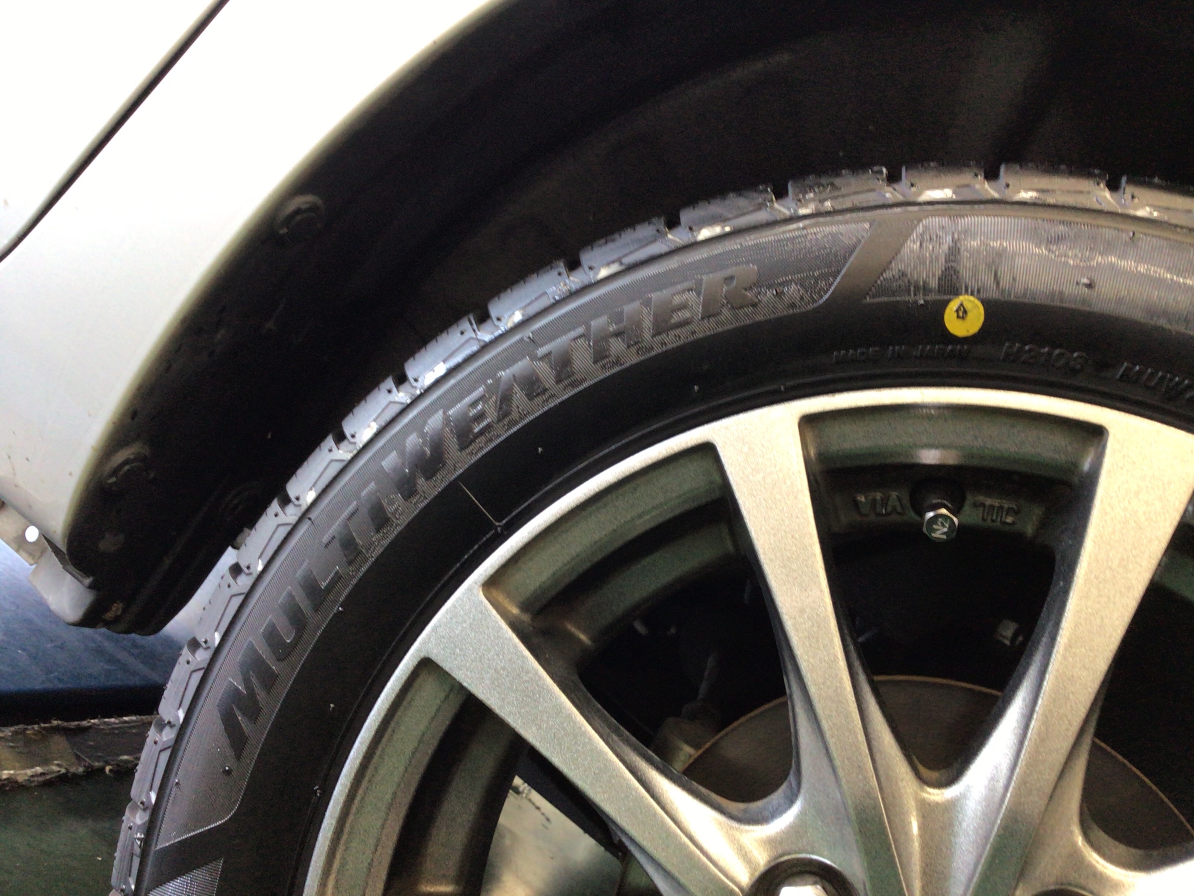雪が降っても走行のできるオールシーズンタイヤに交換させていただきました。