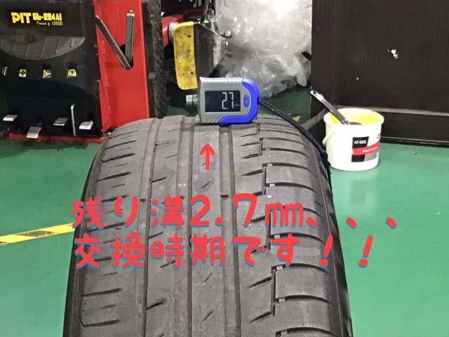 交換する前のタイヤです。残り溝が、2.7ミリでした。