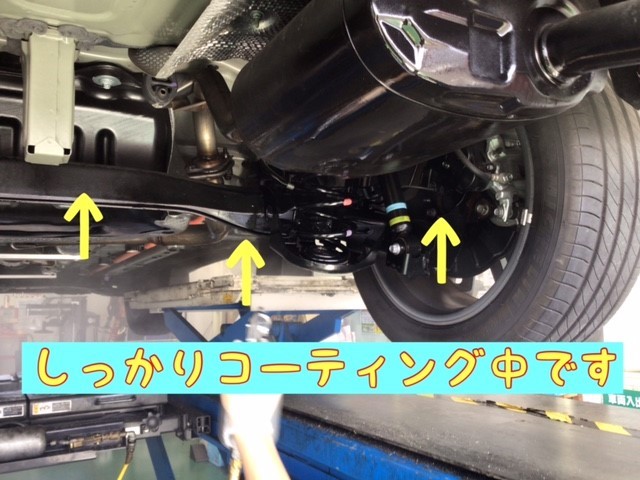 お車の下廻りのサビの進行を防ぐ為施工しました。
