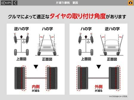 そうさせないためにタイヤを交換した時にタイヤの向きを治す作業『アライメント』を一緒にやってあげると効果抜群です。