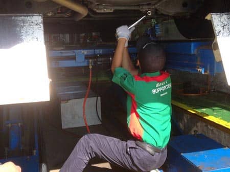 ちなみに作業風景は、写真3枚目のように車の下側に調整するところが着いています。
