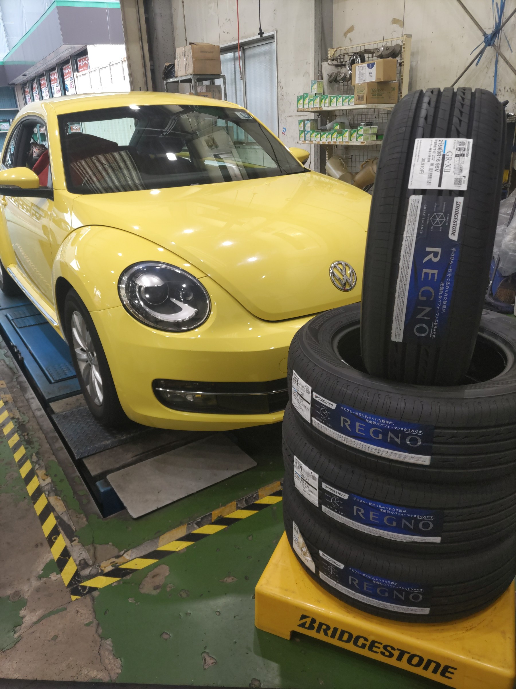 ワーゲン ビートルタイヤ交換&アライメント調整