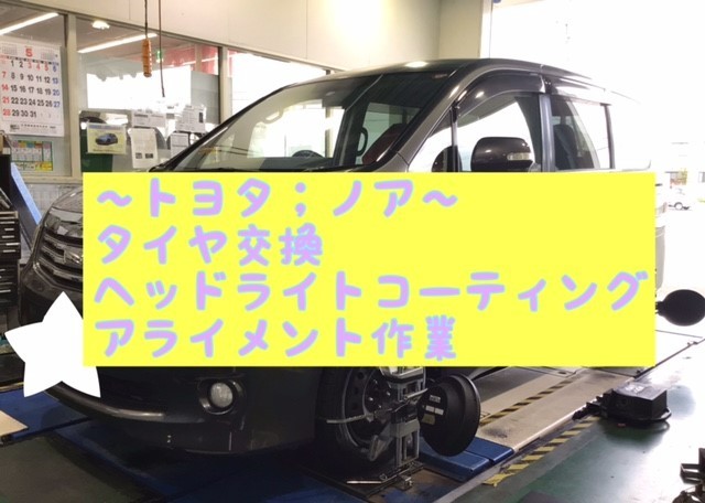 トヨタ:ノア~タイヤ交換+アライメント作業+ヘッドライト交換コーティング