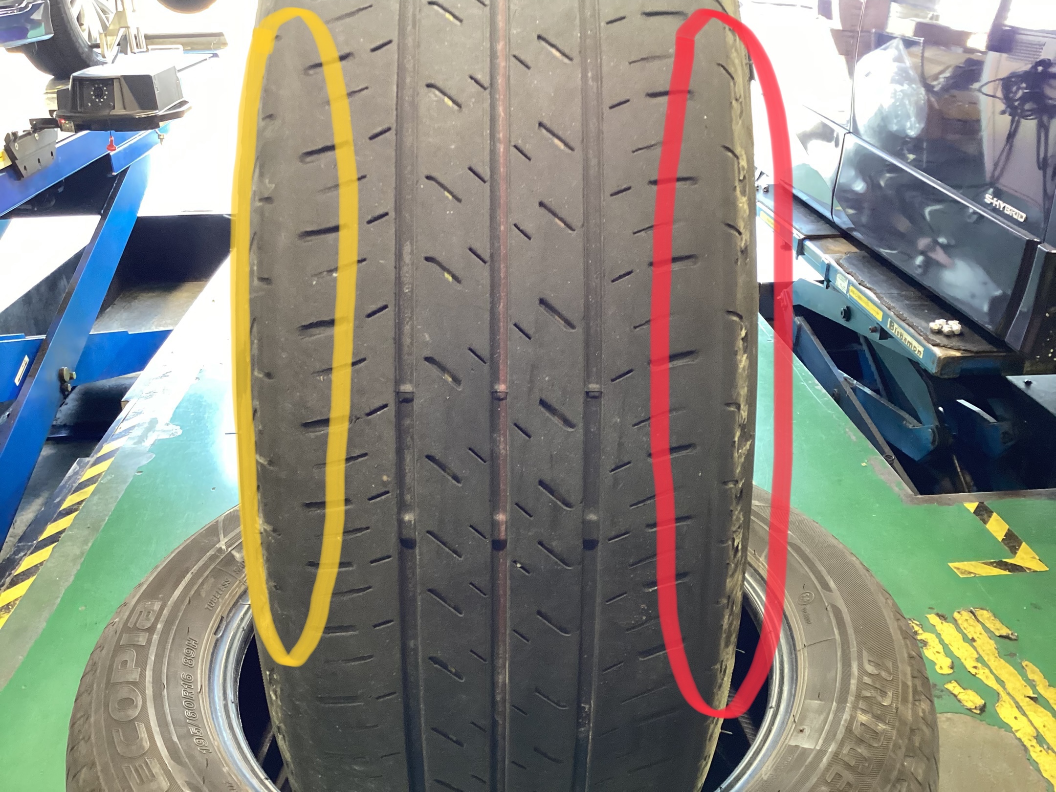 タイヤの内側と外側で溝の減りに変化が(>_<)