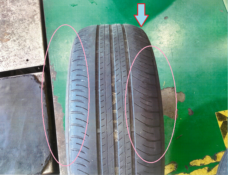 タイヤの減り方に偏りが見え、人間でいう骨盤がズレている現象が見えました。