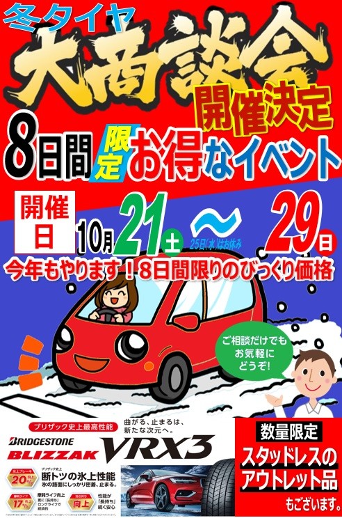 ☆ スタッドレスタイヤ大商談会 開催決定!! ☆