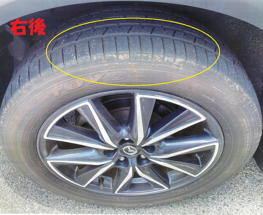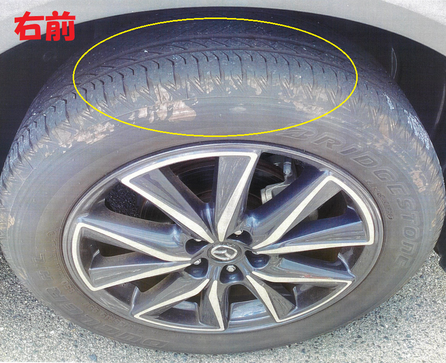 右前の方が、タイヤの角が擦り減っていいるように