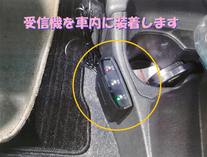 また、車内にも信号機みたいな受信機を装着します。