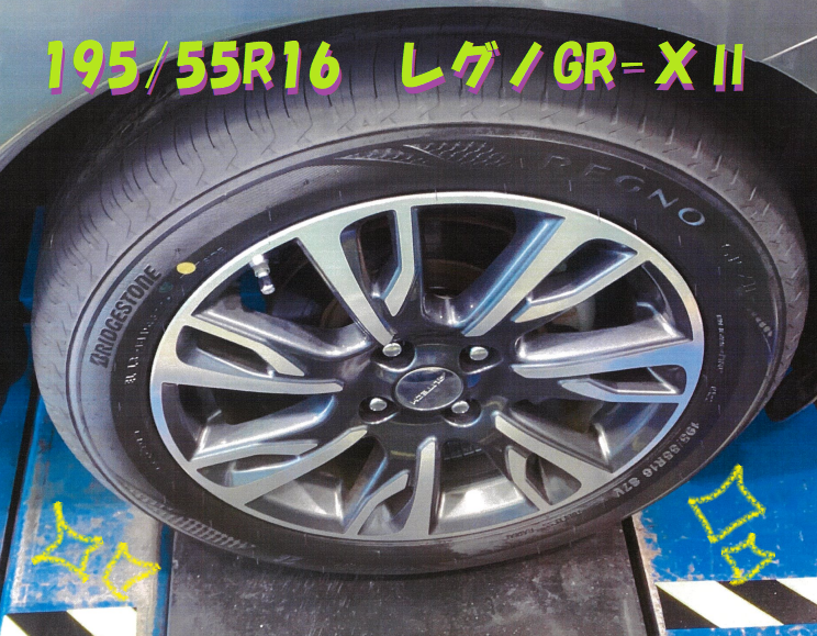 タイヤは、195/55R16のレグノ GR-XⅡをつけました。