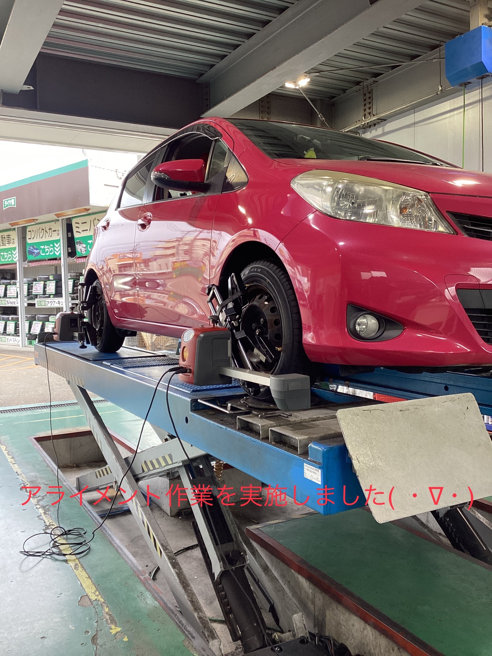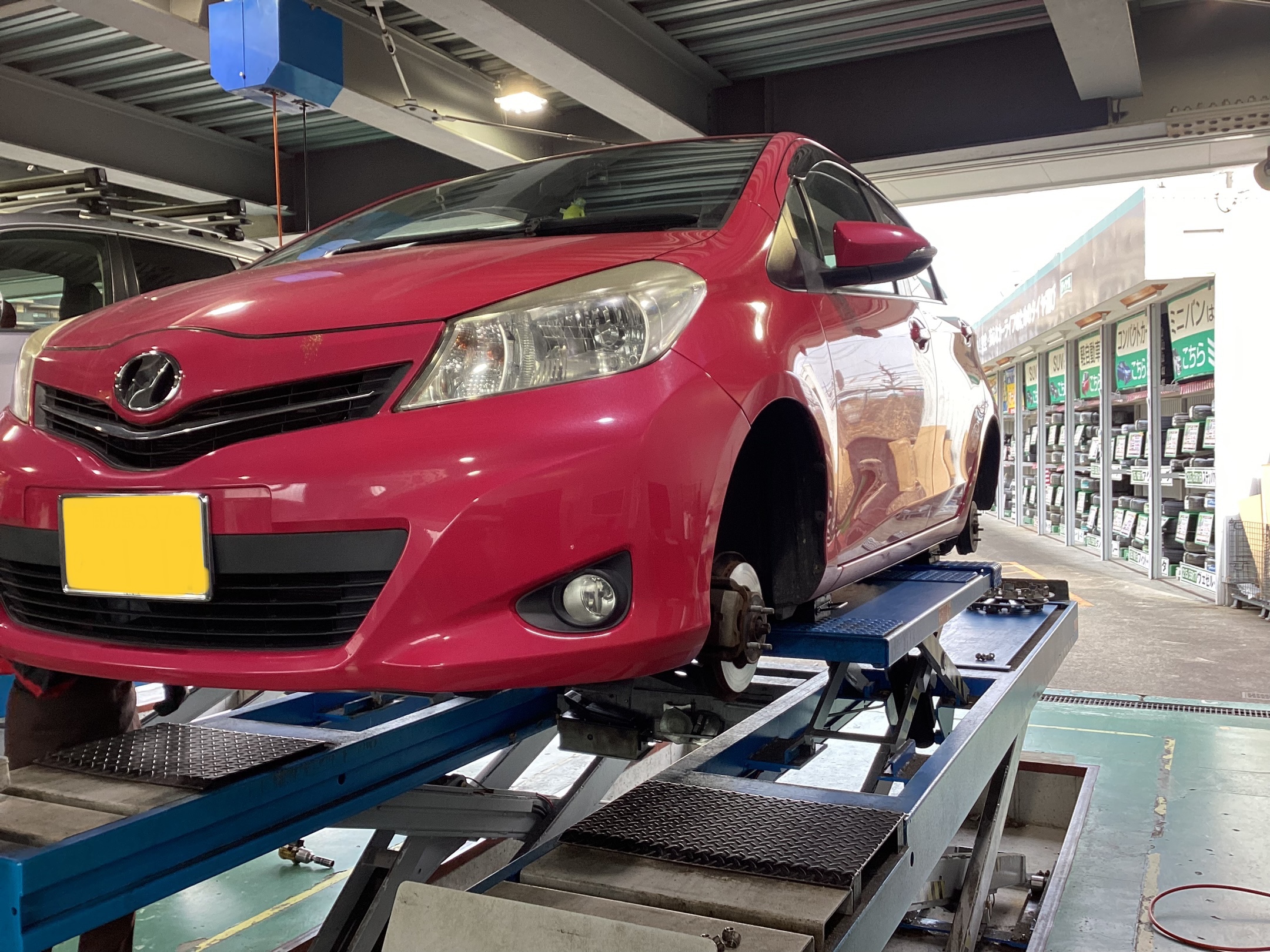 本日は、トヨタ ヴィッツのタイヤ交換・アライメント作業のご紹介です!