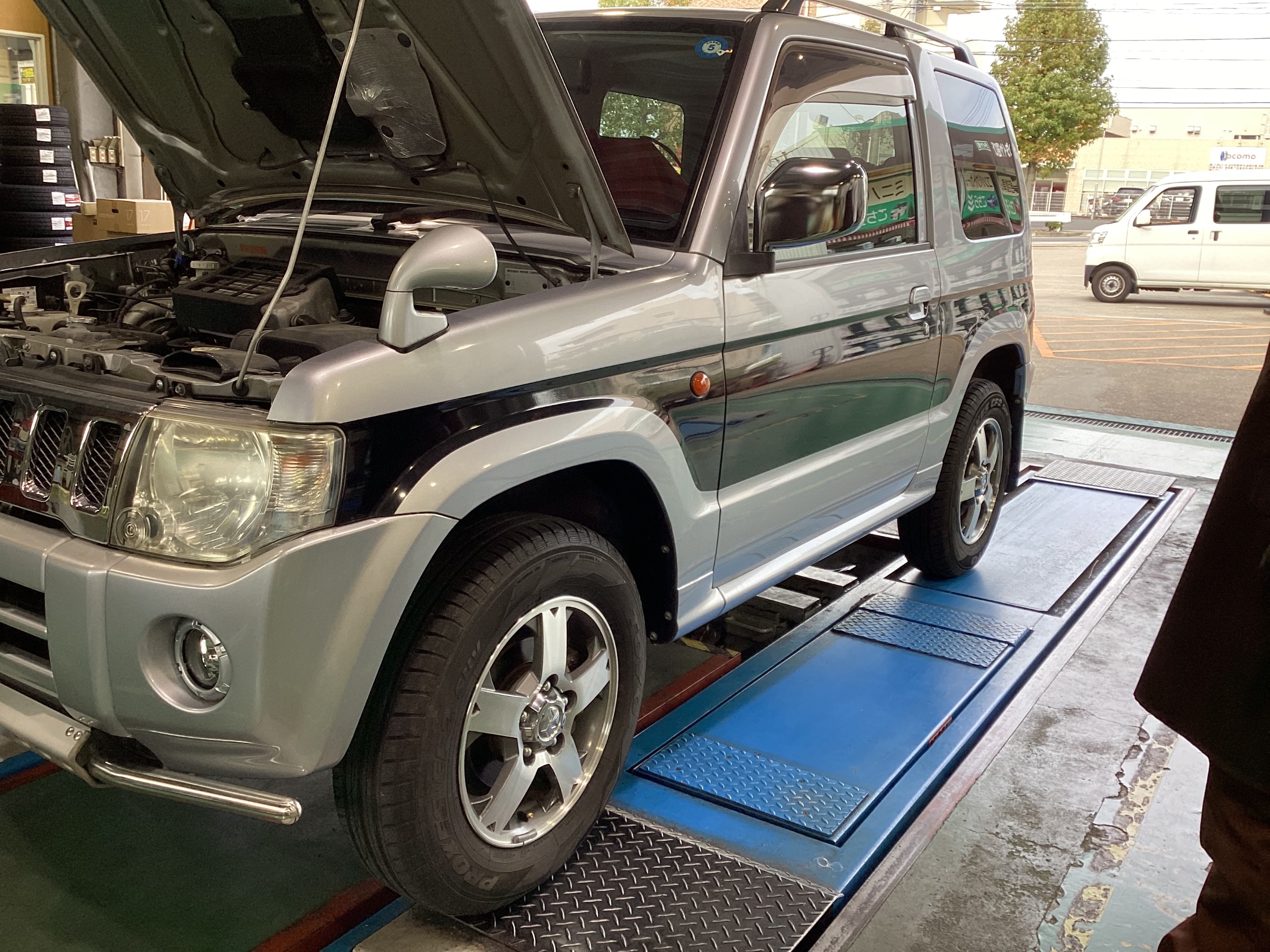 今回は、溝はあるけどヒビが目立ってきてしまったために、交換をさせていただくパジェロミニです。