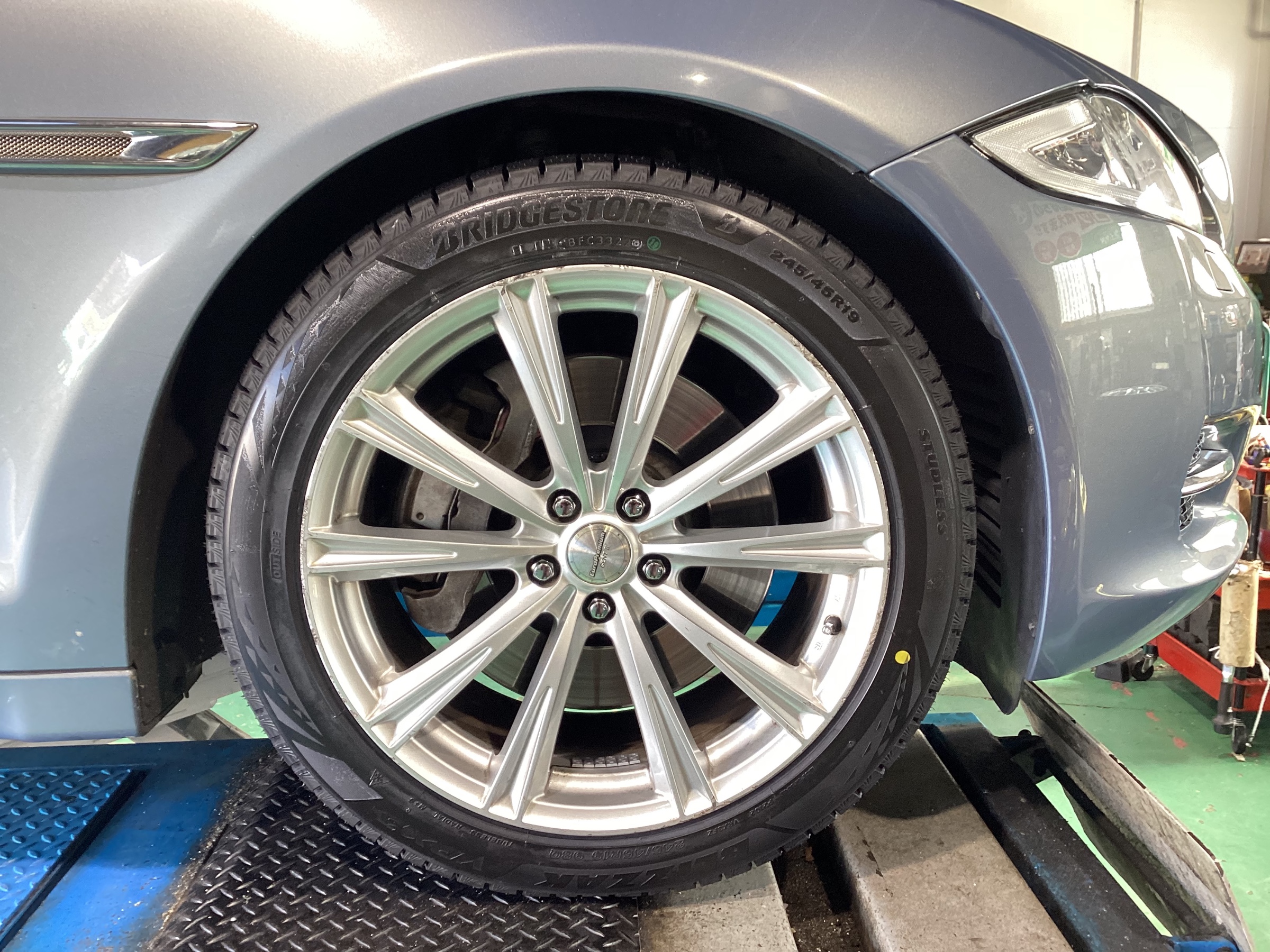 ジャガー XJのスタッドレスタイヤ交換作業のご紹介です!