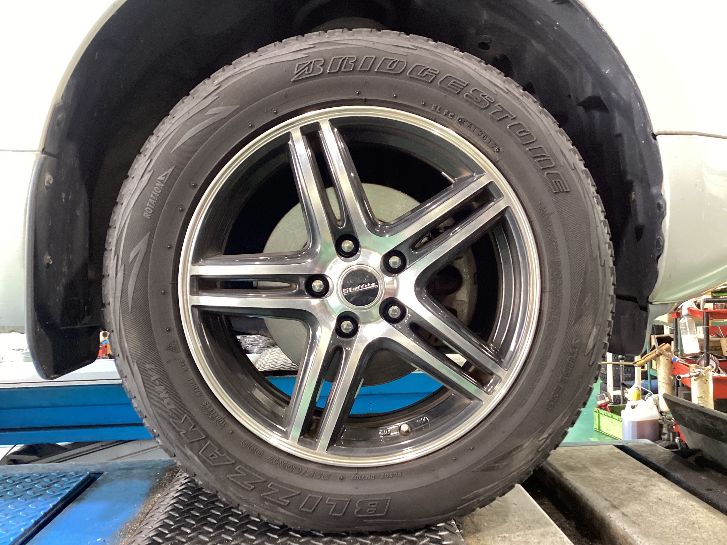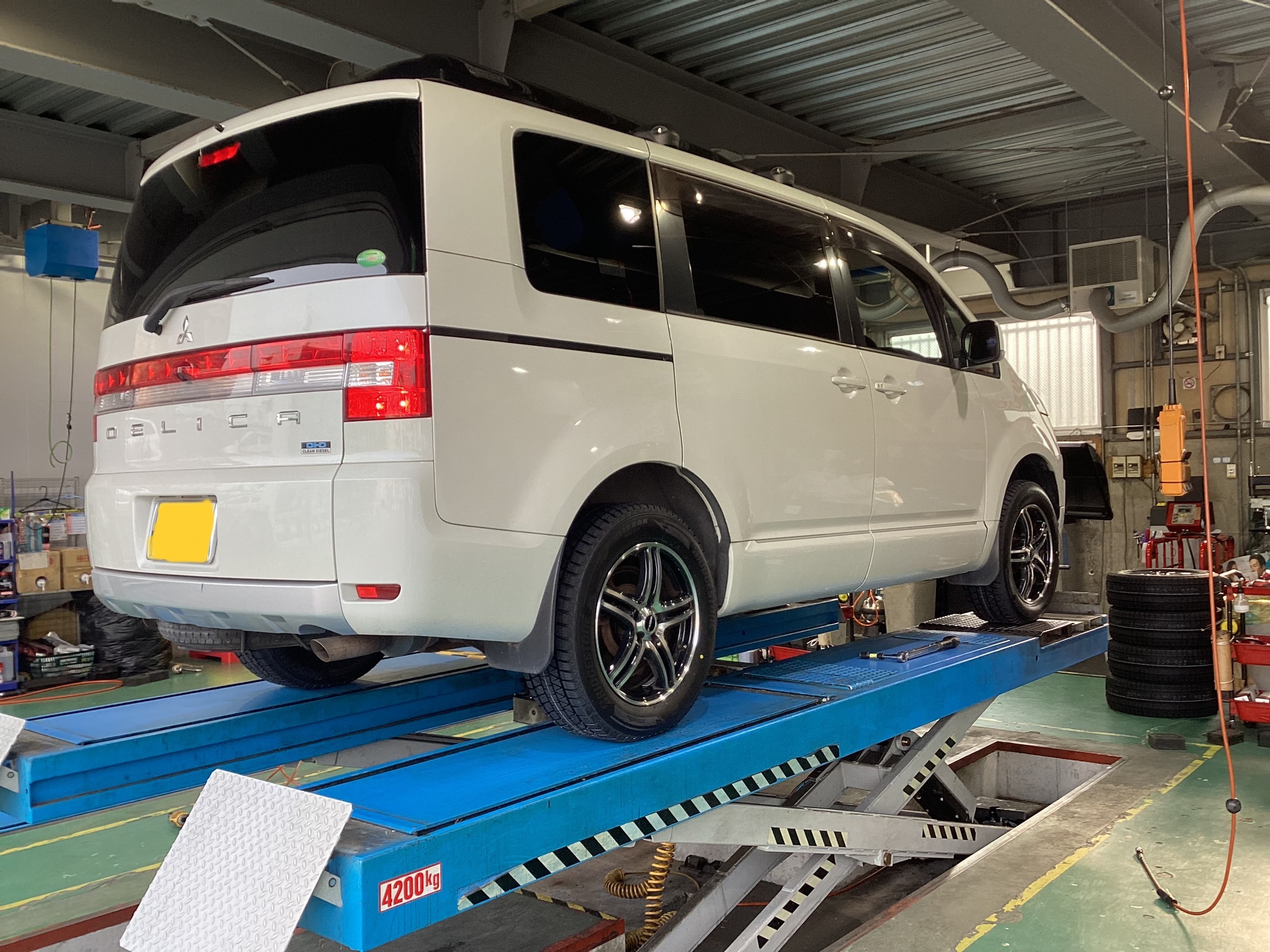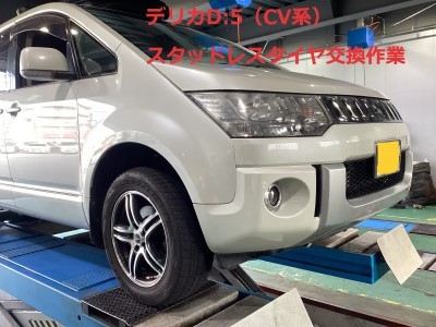 唯一無二のオールラウンドミニバン、デリカD:5のスタッドレスタイヤ交換作業のご紹介です。