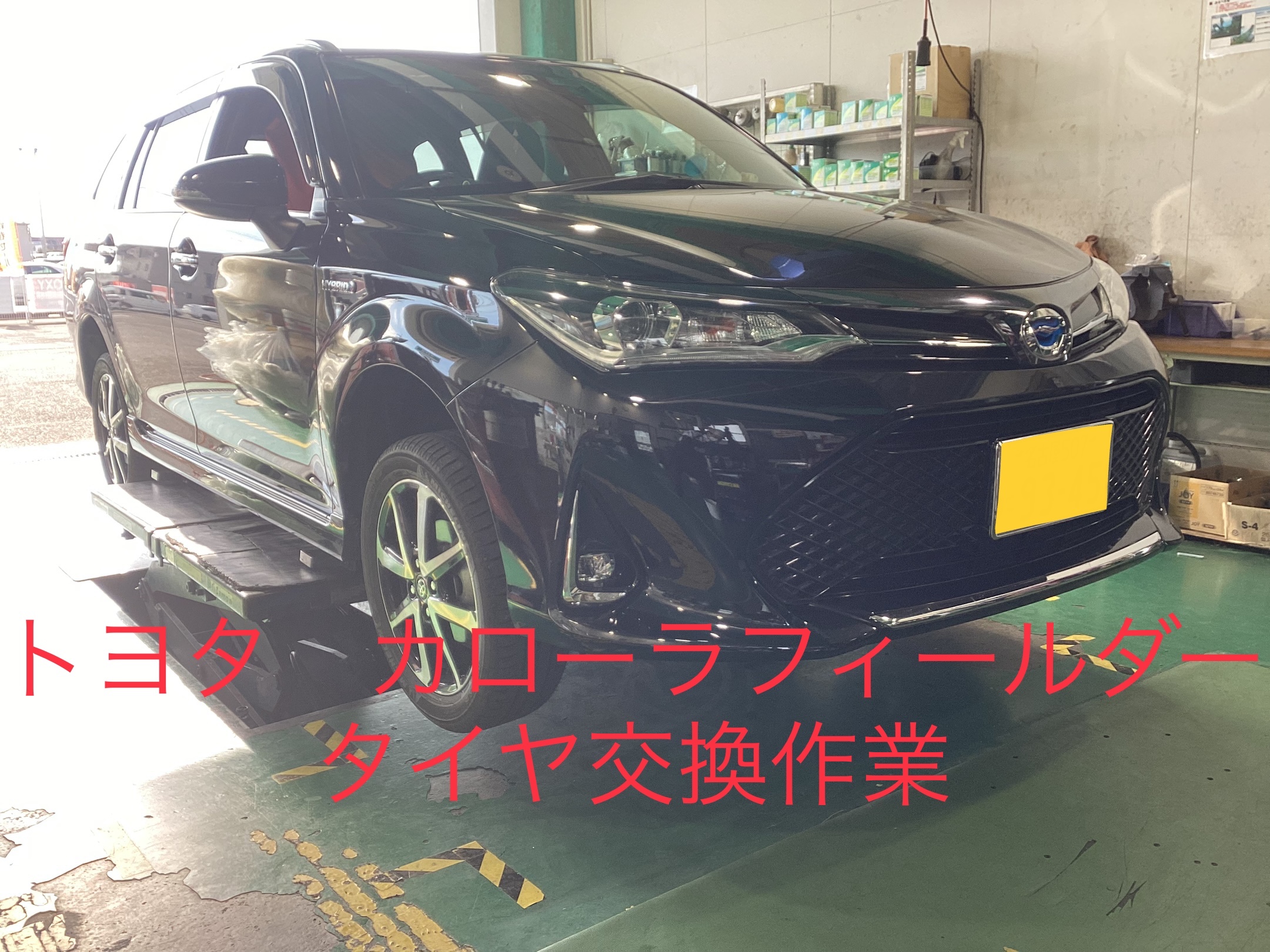 トヨタ カローラフィールダーハイブリッド タイヤ交換作業