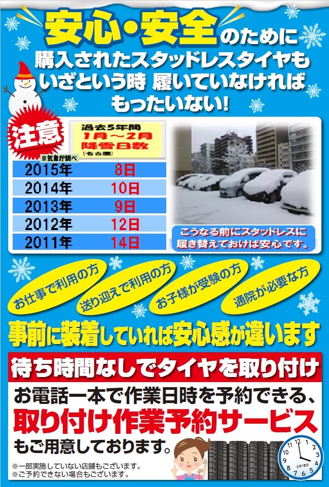 まだスタッドレスを持っていない 持っているけど装着していないという
