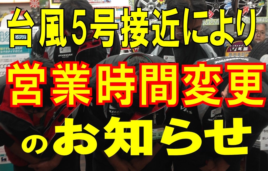 台風の接近に伴い営業時間の変更 ポスト 2017年8月7日 愛知県 稲沢市津島市あま市一宮市 岐阜県海津市 その他、近隣のお客様、こんにちは。 愛知県稲沢市福島町のタイヤ館稲沢です。 台風5号の接近に伴い、本日8/7は16:00をもって閉店とさせていただきます。 ご迷惑おかけしますが、よろしくお願いします。 カテゴリ:お知らせ