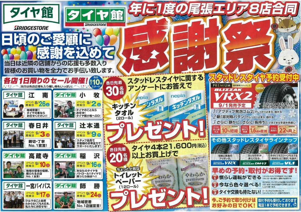 【本日限定】 タイヤ館稲沢 年に1度の感謝祭!!