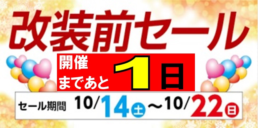 【あと1日】 リニューアルに伴い『改装前セール』 10/14~ ポスト 2017年10月13日 愛知県 稲沢市 津島市 あま市 愛西市 一宮市 蟹江町 大治町 清須市 岐阜県海津市 三重県桑名市 その他、近隣のお客様 こんにちは。 愛知県稲沢市福島町のタイヤ館稲沢です。 今月末 タイヤ館稲沢は装いも新たにニリューアルさせていただくこととなりました。 それに伴い 10/14(土)~10/22(日) 12:00まで 『改装前セール』を開催させていただきます。 期間中、店内在庫商品をお値打ちにご提供させていただきます。 ぜひご来店ください。 カテゴリ:お知らせ