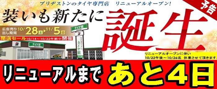 あと4日です。 タイヤをお探しのお客様はもうしばらくおまちください。