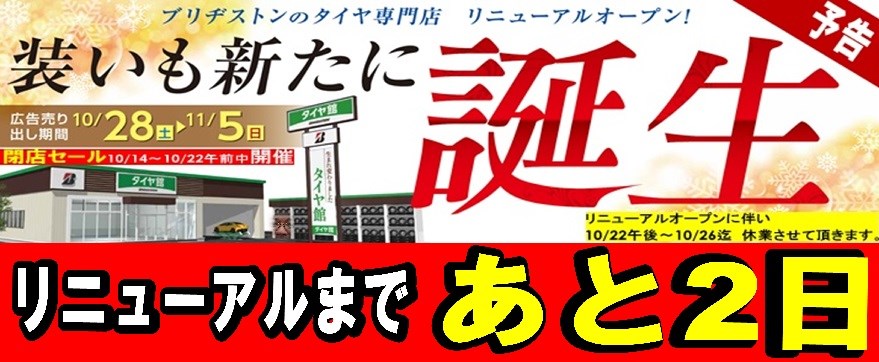 あと2日です。 タイヤをお探しのお客様はもうしばらくおまちください。