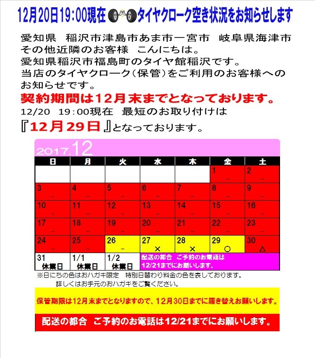 ■■■タイヤ保管のお取り寄せ最短は12/28です■■■