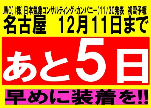11/30発表 JWC初雪予報12/11まであと5日