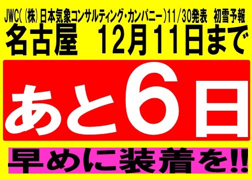 11/30発表 JWC初雪予報12/11まであと6日