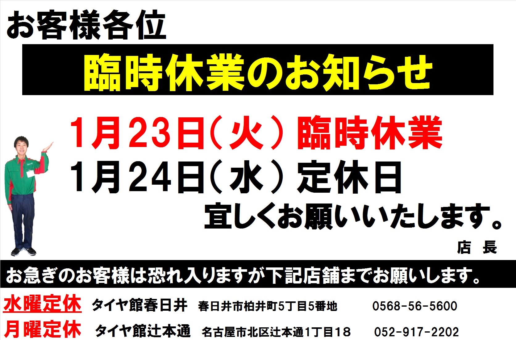 1月24日(水) 降雪予報の為 緊急営業決定しました