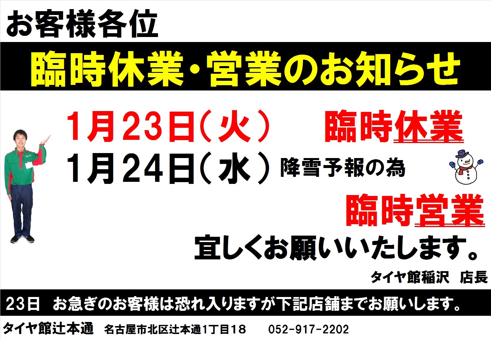 なお1月23日は先日のご案内通り、臨時休業させていただきます。