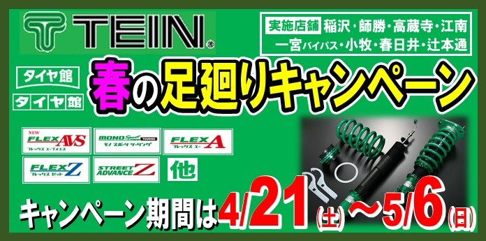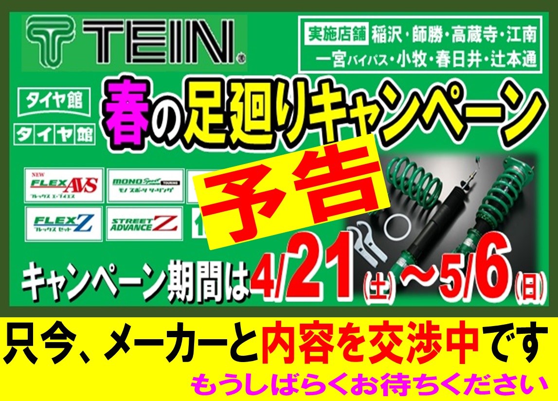 『春の足廻りキャンペーン』開催決定しました ポスト 2018年3月24日 愛知県 稲沢市津島市あま市一宮市 岐阜県海津市 その他近隣のお客様 こんにちは。 愛知県稲沢市福島町のタイヤ館稲沢です。 タイヤ館稲沢では昨年に引き続き 4月21~5/6にて 『春の足廻りキャンペーン』を開催決定しました。 新車を買ったからローダウンしたい! そろそろリフレッシュ というかたはもうしばらくお待ちください。 カテゴリ:お知らせ