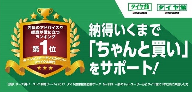 この度、タイヤ館が『店員のアドバイスや提案が役に立つランキング』