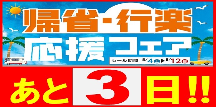 「帰省・行楽応援フェア」まであと3日です。 ポスト 2018年8月1日 愛知県 稲沢市津島市あま市一宮市 岐阜県海津市 その他近隣のお客様、こんにちは。 愛知県稲沢市福島町のタイヤ館 稲沢です。 「帰省・行楽応援フェア」まであと3日です。 夏の集中得市を8月4日(土)~8月12日(日)の9日間、開催します。 夏休み・お盆に家族でお出掛け でも愛車は大丈夫? タイヤ館で一度メンテナンスはいかがですか? ぜひこの機会にご来店ください。 カテゴリ:お知らせ