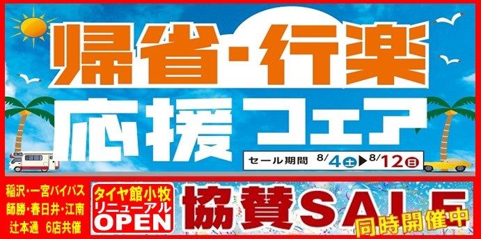 帰省・行楽応援フェア & タイヤ館小牧リニューアル協賛フェア 始まりました!! ポスト 2018年8月4日 始まりました!! お盆の帰省に!行楽に!! 愛車を使用される方は 一度メンテナンスしませんか? カテゴリ:お知らせ