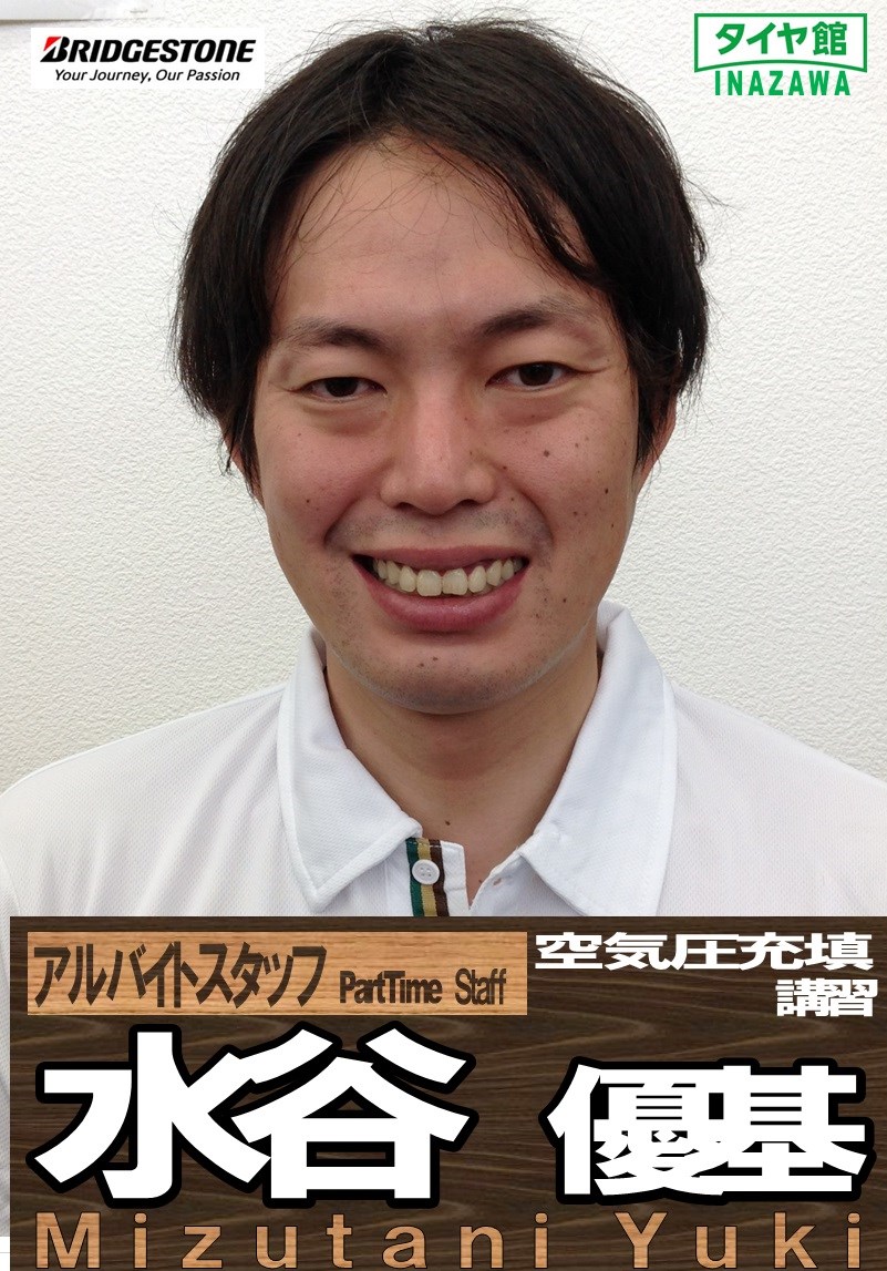 タイヤ館稲沢に新しい仲間が増えました!! ポスト 2018年9月10日 愛知県 稲沢市 津島市 あま市 愛西市 一宮市 蟹江町 大治町 清須市 岐阜県海津市 三重県桑名市 その他、近隣のお客様 こんにちは。 愛知県稲沢市福島町のタイヤ館稲沢です。 ども、つぼやんです。 本日から『水谷 優基』さんがタイヤ館稲沢でアルバイトとして入社しました。 基本的にアルバイトですから、直接作業には関わりませんが タイヤの準備やWAXがけなど 影で作業をサポートしていただきます。。宜しくお願いします。