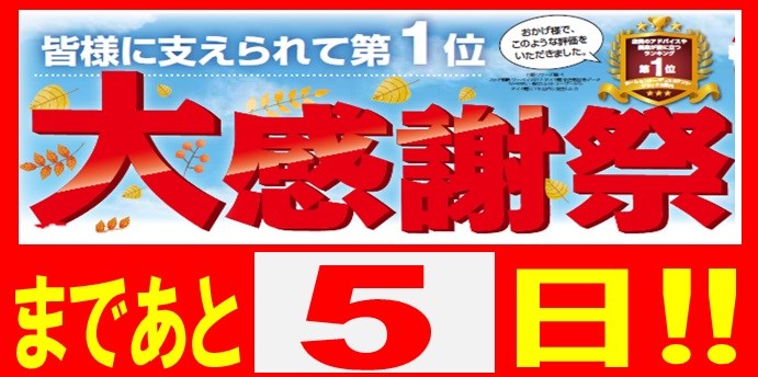 皆様に支えれられて第1位 「大感謝祭」開催まであと5日!