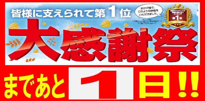 皆様に支えれられて第1位 「大感謝祭」開催まであと1日!