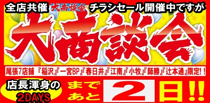 尾張の店長渾身の2DAYS「大商談会」開催まであと2日! ポスト 2018年11月1日 愛知県 稲沢市津島市あま市一宮市 岐阜県海津市 その他近隣のお客様、こんにちは。 愛知県稲沢市福島町のタイヤ館 稲沢です。 尾張の店長渾身の2DAYS「大商談会」開催まであと2日! そろそろタイヤ交換だけど 良い物が安くお値打ちに買えたらな~ 今冬はスタッドレス購入予定だけど、お値打ちに買えたらな~ な~んてお客様 チャンスです。 ぜひこの機会にご来店ください。 カテゴリ:お知らせ