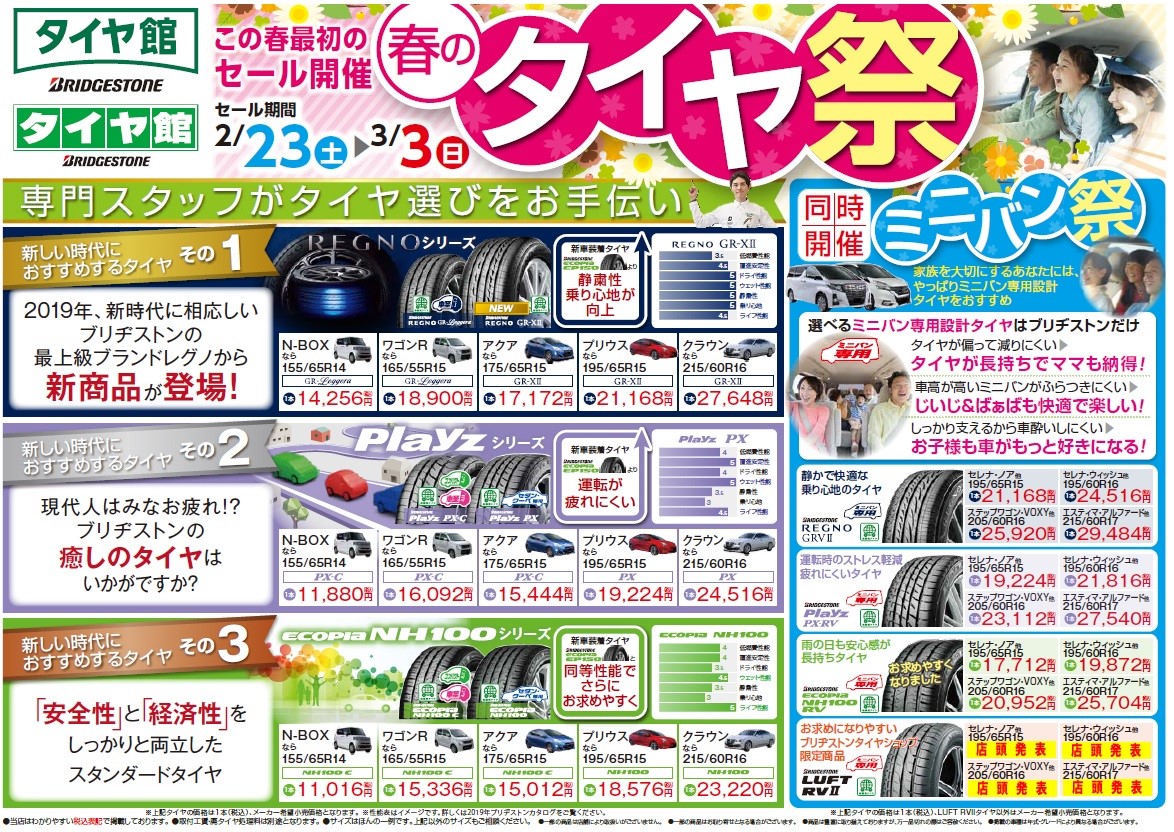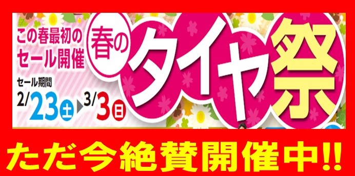 いよいよ今日から!!「春のタイヤ祭」 ポスト 2019年2月23日 愛知県 稲沢市津島市あま市一宮市 岐阜県海津市 その他近隣のお客様、こんにちは。 愛知県稲沢市福島町のタイヤ館 稲沢です。 いよいよ今日から!!「春のタイヤ祭」 そろそろ天候も暖かくなりタイヤ交換だけど 良い物が安くお値打ちに買えたらな~ な~んてお客様 チャンスです。 ぜひこの機会にご来店ください。 カテゴリ:お知らせ