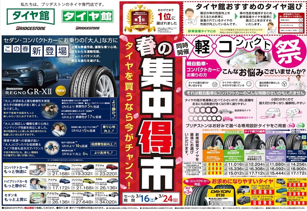 春の集中得市か開催 まで あと1日!! ポスト 2019年3月15日 愛知県 稲沢市津島市あま市一宮市 岐阜県海津市 その他近隣のお客様、こんにちは。 愛知県稲沢市福島町のタイヤ館 稲沢です。 春の集中得市 開催まであと1日! そろそろ天候も暖かくなりタイヤ交換だけど 良い物が安くお値打ちに買えたらな~ な~んてお客様 チャンスです。 ぜひこの機会にご来店ください。 カテゴリ:お知らせ