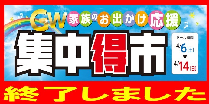 春の集中得市 終了しました ポスト 2019年4月14日 愛知県 稲沢市津島市あま市一宮市 岐阜県海津市 その他近隣のお客様、こんにちは。 愛知県稲沢市福島町のタイヤ館 稲沢です。 が、早くも次回セール決定しました!! ぜひこの機会にご来店ください。 カテゴリ:お知らせ