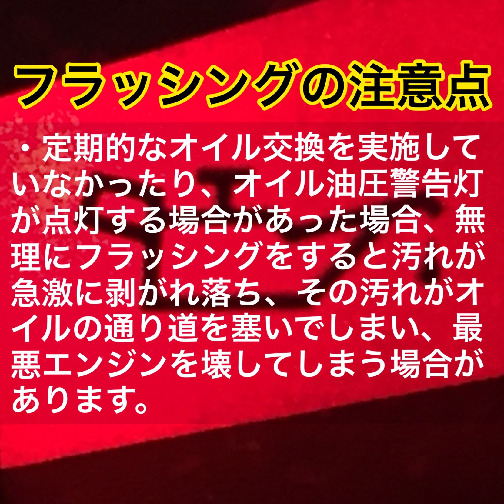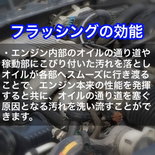 気がつけば交換時期を過ぎてしまった、エンジン内部に汚れがぁ〜〜という場合は、内部の汚れを洗い流す「エンジンフラッシング」をやってみる価値はありそうです。