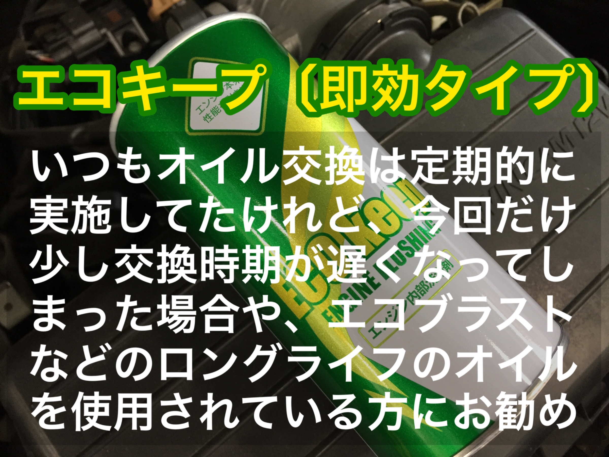 遅効性は次回のオイル交換までゆっくり時間をかけて汚れを溶かしていきます。