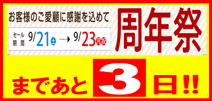 お客様のご愛顧に感謝を込めて『周年祭』開催まであと3日! ポスト 2019年9月18日 愛知県 稲沢市津島市あま市一宮市 岐阜県海津市 その他近隣のお客様、こんにちは。 愛知県稲沢市福島町のタイヤ館 稲沢です。 お客様のご愛顧に感謝を込めて『周年祭』開催まであと3日! 増税(予定)まで あと半月となりました! 増税前に良い物が安くお値打ちに買えたらな~な~んてお客様 チャンスです。 ぜひこの機会にご来店ください。 カテゴリ:お知らせ