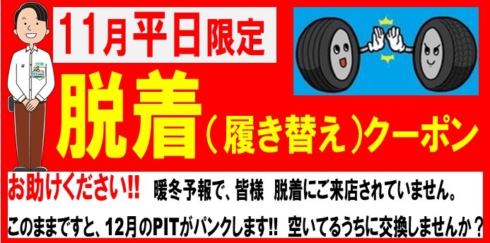 暖冬予報の為、10月~11月前半に脱着(スタッドレスへの履き替え)にご来店された