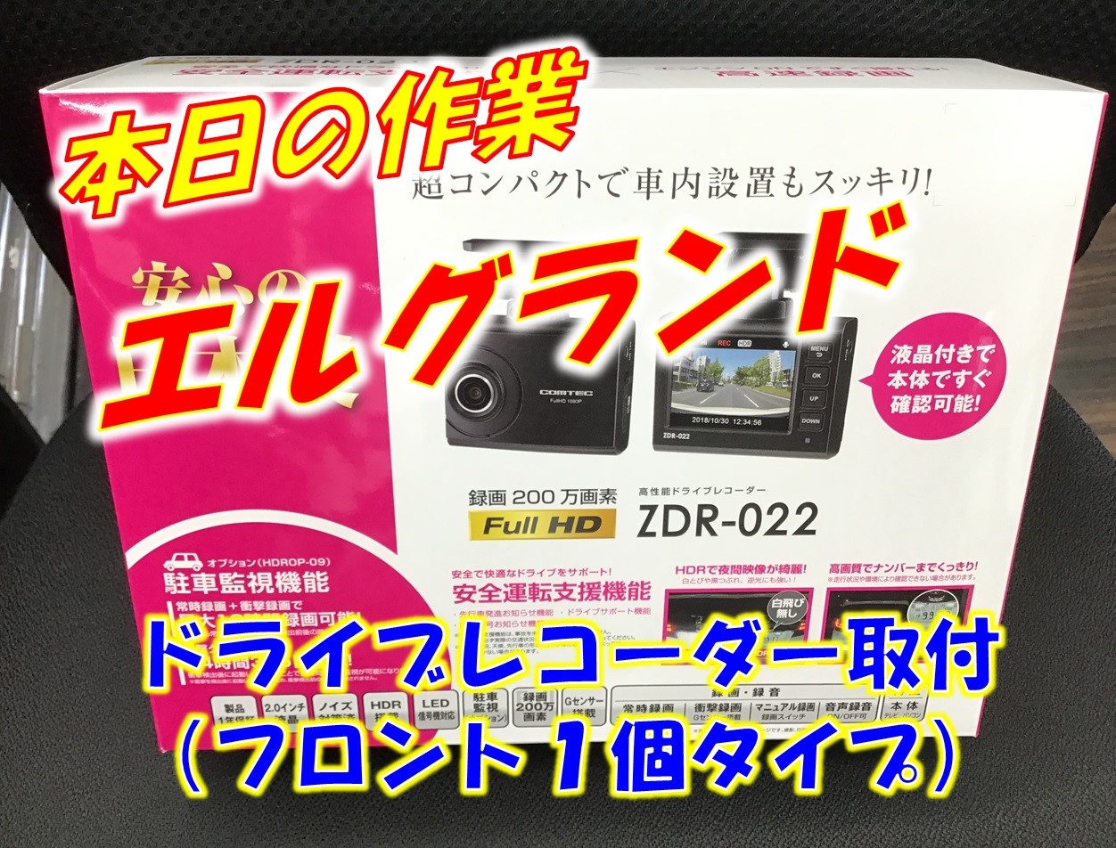 ☆ 本日の作業 ☆ 【日産エルグランド ドライブレコーダー】