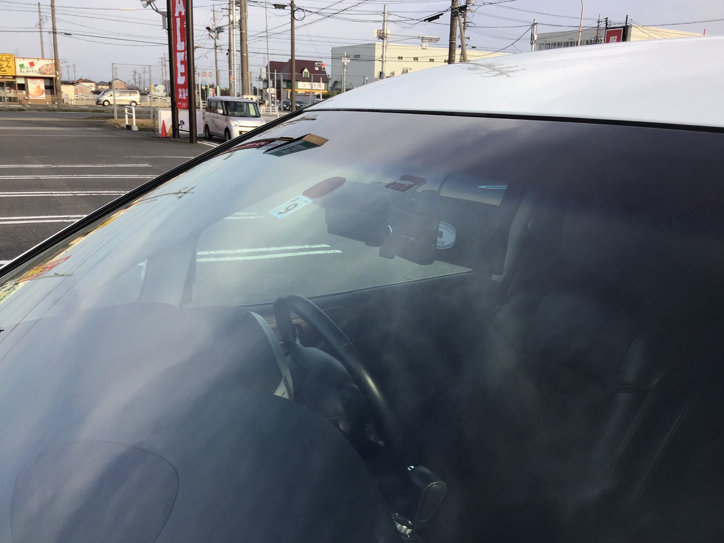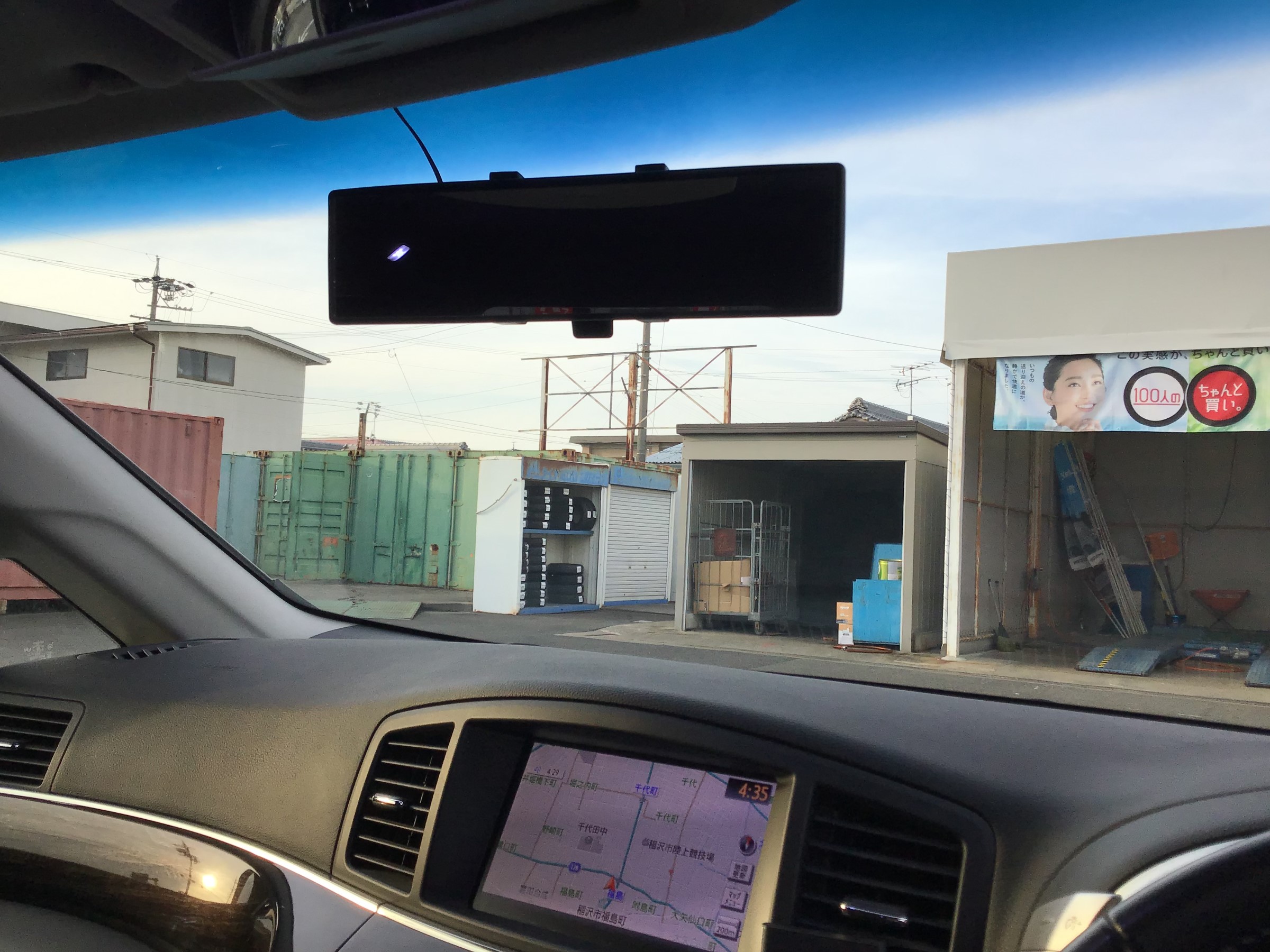 視界の邪魔になるので運転席側からはルームミラーの陰に隠れる様に設置。