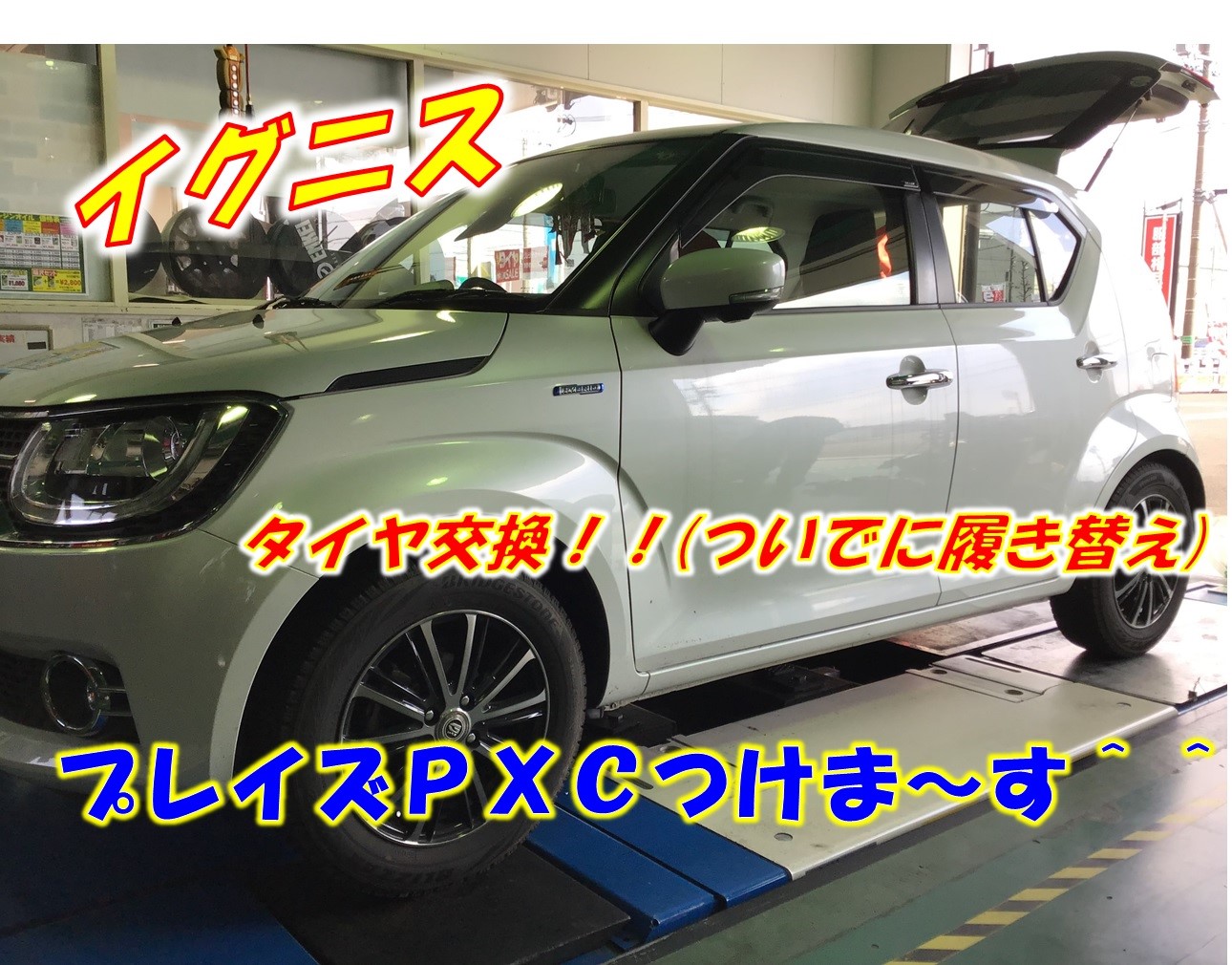 【イグニス】タイヤ交換【プレイズPX-C】 ポスト 2020年3月15日 こんにちは。タイヤ館稲沢店の大桑です! 今日はスズキ、イグニスのタイヤ交換です! というわけです。おしゃれな車でかわいいですね^^ このホイールにつけます! プレイズPX-Cを! プレイズシリーズ!長距離運転やお車に乗る時間長い人にはgoodなタイヤです^^ もちろん街乗りも快適ですよ! 是非お問い合わせください^^ 〇〇様!ありがとうございました!! カテゴリ:タイヤ関連 担当:大桑