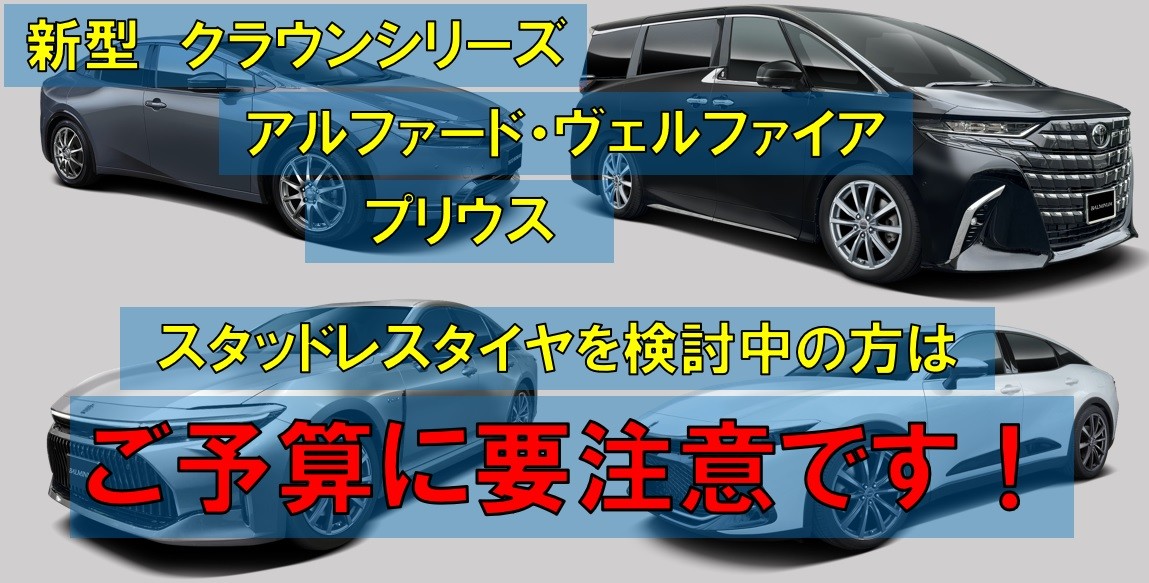 新型 クラウンシリーズ・アルファード・ヴェルファイア・プリウスでスタッドレスタイヤを検討中の方は、ご予算に要注意です!