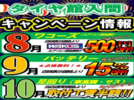 お出かけ前にタイヤ館で愛車無料安全点検を!