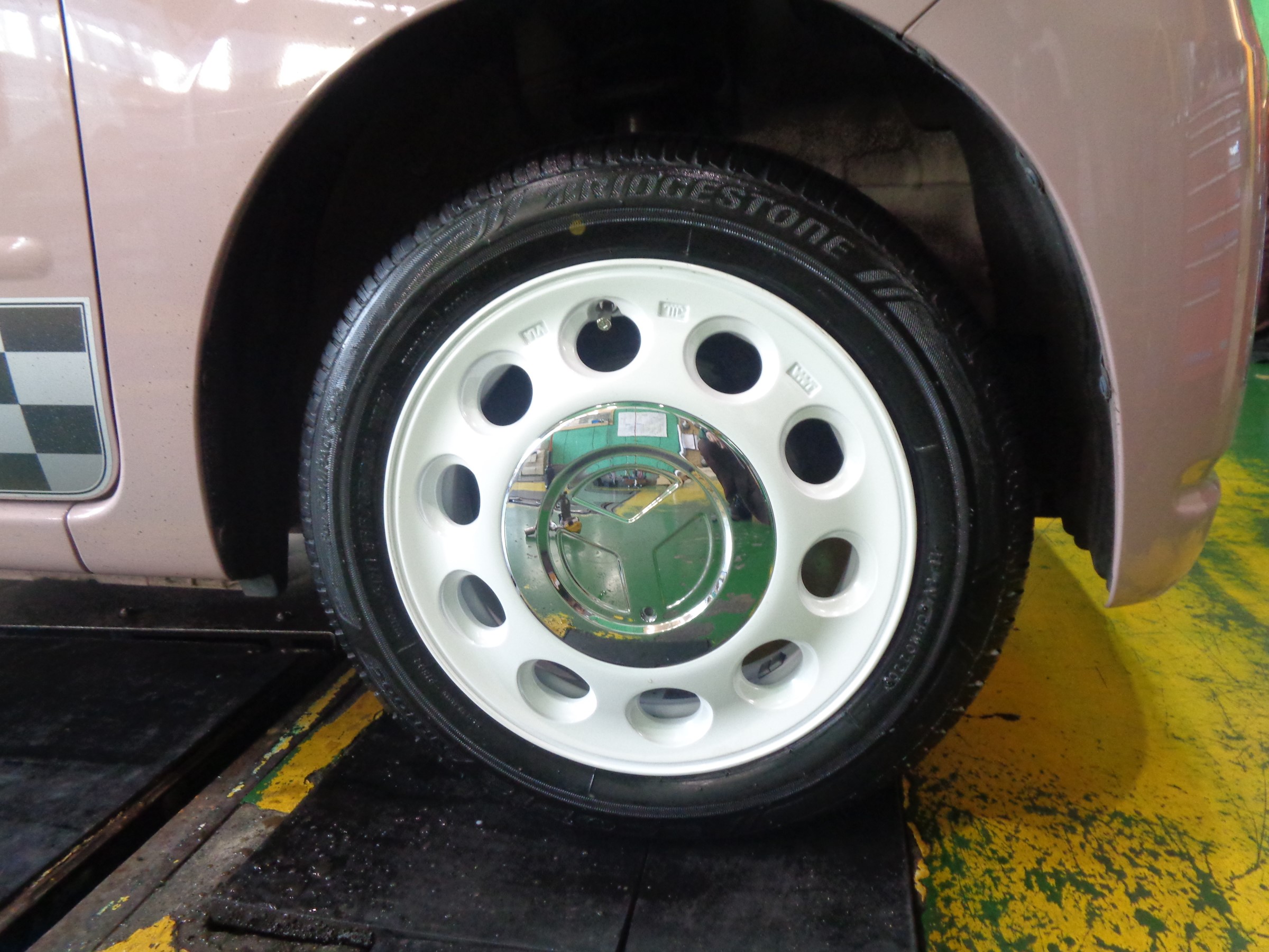 今回はダイハツ・ミラココアの新品タイヤ&アルミホイールセット取付けをご紹介します!